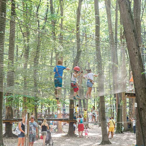 Aici veți găsi activități pentru toți membrii familiei: trasee în copaci, escalada, biciclete, ferma animalelor, paintball sau tir cu arcul. Puteți petrece noaptea aici în casuțele din copaci.